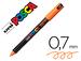 Peinture opaque et couvrante, sans alcool ni solvant. Sans odeur. Encre à base d'eau. Permanente sur les surfaces poreuses et effaçable sur le verre. Couleurs miscibles aquarellables et superposables. Pointe calibrée bague métal extra-fine de 0,7 mm. Coloris orange foncé.