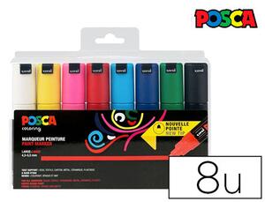 MARQUEUR. Depuis 30 ans, le marqueur POSCA accompagne la création et impulse une dynamique artistique sur tous les supports. Peinture à base de pigments naturels inaltérables. Couleurs couvrantes, aquarellables, mélangeables, patinables, superposables. Permanent sur surfaces poreuses. Semi-permanent (effaçable) sur surfaces lisses non poreuses. Ne traverse pas le papier. Plus d'information sur www.posca.com ! Étui de 8 marqueurs *.