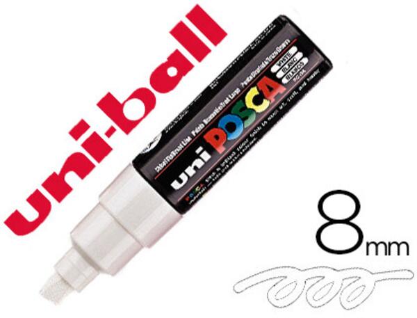 Marqueur POSCA PC-8K Gouache Encre Inodore Toutes Surfaces Pointe Large Biseautée Couleur Opaque Couverte Blanc