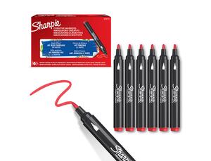 "Sharpie® Bullet' Marqueurs Créatifs | Pointe Ogive | Largueur du trait : 2.5 mm | Marqueur opaque à débit d'encre instantané, sans dégorgement | Surfaces d' application : papier, métal, bois, céramique, verre, roche, toile, y compris sur les surfaces sombres et claires ! | Encre Acrylique | """RED""" Rouge | Boîte de 6"