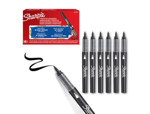 "Sharpie® Brush' Marqueurs Créatifs | Pointe Pinceau | Largueur du trait : minimum 1.2 mm | Marqueur opaque à débit d'encre instantané, sans dégorgement | Surfaces d'application : papier, métal, bois, céramique, verre, roche, toile, y compris sur les surfaces sombres et claires ! | Encre Acrylique | """BLACK""" Noir | Boîte de 6"