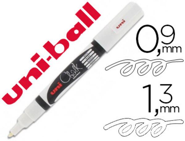 Le Marqueur UniBall Craie Chalk Marker est parfait pour écrire et dessiner sur des surfaces non poreuses comme les tableaux noirs, les panneaux lumineux, les vitrines et bien plus encore. Il s'efface facilement avec un chiffon humide, vous permettant de changer et corriger vos écrits sans effort. Ce marqueur à base de craie liquide offre une écriture nette et précise grâce à sa pointe conique fine.