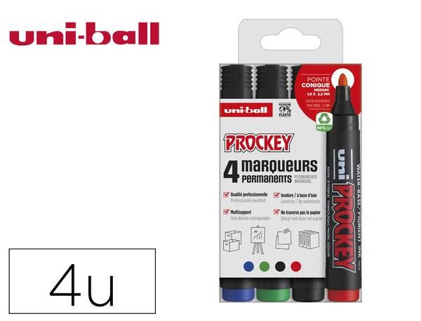 Le marqueur Uniball Prockey PM122 est un stylo marqueur permanent conçu pour offrir un tracé précis grâce à sa pointe conique de taille moyenne. Sa formulation d'encre garantit une excellente résistance à l'eau, à la lumière et au frottement, assurant ainsi une durabilité optimale sur diverses surfaces comme le papier, le carton, le plastique, le métal et le verre. Ce lot comprend une pochette de 4 unités en coloris assortis, répondant à différents besoins de marquage, d'étiquetage ou de dessin.