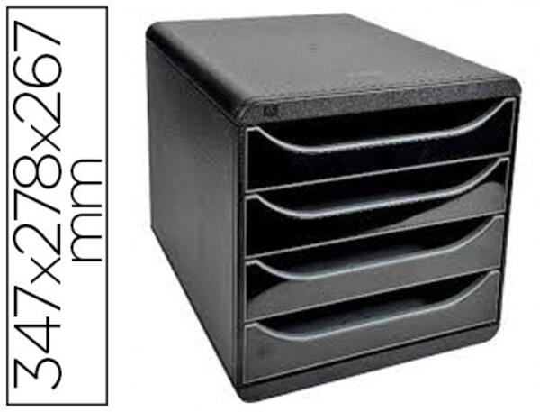 Caisson individuel à 4 tiroirs pour documents jusqu'au format A4 +. Monobloc, ultra-rigide. Tiroirs ouverts pour une introduction directe de documents sans les ouvrir. Coulissement parfait des tiroirs, avec butée de sécurité. Dimensions : 347 x 278 x 267 mm. Produit certifié Ange Bleu.