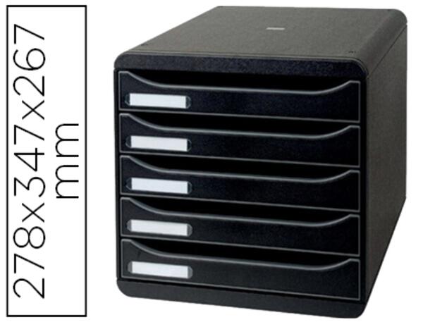 "Caisson individuel à 5 tiroirs pour documents au format A4 +. Monobloc, ultra-rigide. Superposable grâce à 4 reliefs prévus à cet effet. Tiroirs ouverts pour une meilleure introduction des documents. Coulissement parfait des tiroirs, avec butée de sécurité et porte-étiquettes. Fourni avec un jeu d'étiquettes """Lundi à Dimanche""". Dimensions : 347 x 278 x 271 mm."