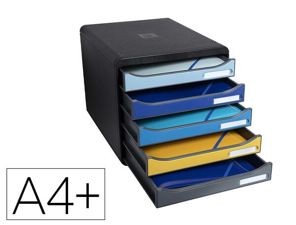 Polystyrène recyclé. Caisson monobloc, superposable. Ouvertures en façade pour y glisser facilement les documents. Tiroirs coulissants silencieux, avec butée d'arrêt. Garantie 25 ans. Pour documents jusqu'au format A4+. Dimensions : 347 x 278 x 271 mm. Produit certifié Ange Bleu.