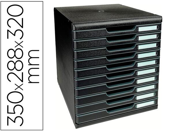 Réalisé à partir de bouteilles de jus de fruits recyclées. Format A4+. Modules de hauteur identique à celle d'un classeur à levier. Coulissement parfait des tiroirs, avec butée de sécurité, poignée confortable et porte-étiquette. Livré avec tous les clips et obturateurs nécessaires au montage et à la finition. Coloris noir. Dimensions : 350 x 288 x 320 mm. Produit certifié Ange Bleu.