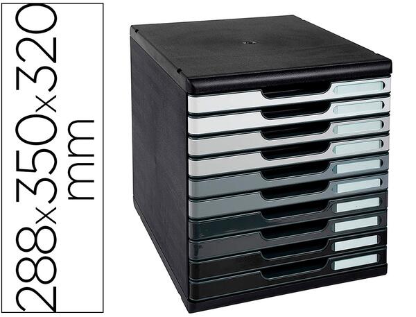 Réalisé à partir de bouteilles de jus de fruits recyclées. Système de classement élégant et fonctionnel pour documents au format A4+. Modules de hauteur identique à celle d'un classeur à levier, superposables et juxtaposables. Évolutif grâce à 4 hauteurs de tiroirs interchangeables. Coulissement parfait des tiroirs, avec butée de sécurité, poignée confortable et porte-étiquette. Livré avec tous les clips et obturateurs nécessaires au montage et à la finition. Coloris noir/nuances de gris. Dimensions : 350 x 288 x 320 mm. Produit certifié Ange Bleu.