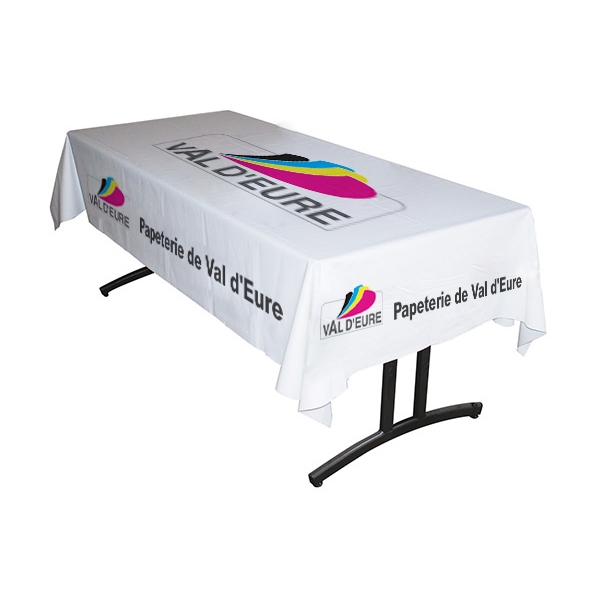 Nappe personnalisée avec votre logo, finition ourlets sur les côtés.