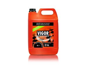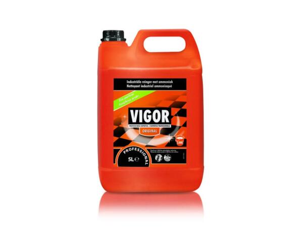 VIGOR - NETTOYANT INDUSTRIEL AMMONIAQUE Elimine les graisses végétales, animales et minérales - Très efficace sur les salissures difficiles. S'utilise pur ou dilué. Ne pas utiliser sur sols protégés. Parfum frais Dilution : de 2 à 15ml par litre d'eau selon type de salissures. Bidon de 5L