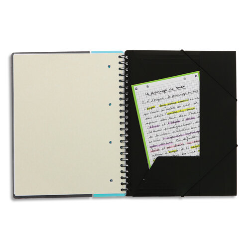 160 pages. Couverture polypropylène résistante et durable. Chemise 3 rabats intégrée à la couverture. Fermeture par élastique.