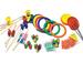 Pour la découverte et l'initiation à la jonglerie, set comprenant : 12 balles éco Ø62mm-80g / 6 diabolos big - baguettes bois / 3 assiettes chinoises - baguettes plastique / 6 anneaux junior Ø24cm / 1 livret