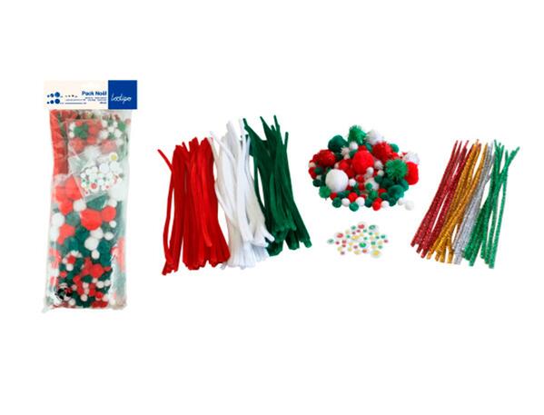 Pack NOËL 113 pompons + 38 pompons métallisés + 35 yeux mobiles + 99 chenilles + 24 chenilles métallisées - 300 pcs - 5 coloris