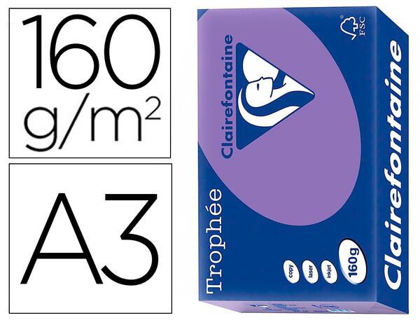 La ramette de papier A3 trophée intense violine 160 gr Clairefontaine est un support idéal pour véhiculer les informations et réaliser une communication personnalisée. Ce type de papier est adapté en photocopieur, imprimantes laser et jet d'encre. Son passage en recto verso est garanti sans risque de bourrage. Les teintes sont identiques grâce à sa régularité de fabrication. La ramette de papier A3 trophée intense violine 160 gr Clairefontaine possède un emballage transparent, pratique pour visualiser le stock et le coloris. Ses principales utilisations : réalisation de notes d'information, circulaires, formulaires, rapports d'activités, mailings, communication d'entreprise. Normes : ISO 14001, ISO 9001, FSC, ECF. U.V : La rametmette