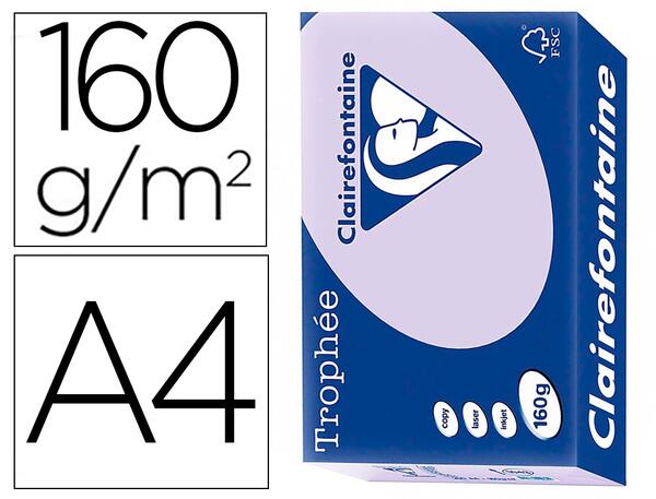 La ramette de papier A4 trophée pastel lilas 160 gr Clairefontaine est un support idéal pour véhiculer les informations et réaliser une communication personnalisée. Ce type de papier est adapté en photocopieur, imprimantes laser et jet d'encre. Son passage en recto verso est garanti sans risque de bourrage. Les teintes sont identiques grâce à sa régularité de fabrication. La ramette de papier A4 trophée pastel lilas 160 gr Clairefontaine possède un emballage transparent, pratique pour visualiser le stock et le coloris. Ses principales utilisations : réalisation de notes d'information, circulaires, formulaires, rapports d'activités, mailings, communication d'entreprise. Normes : ISO 14001, ISO 9001, FSC, ECF. U.V : La ramette