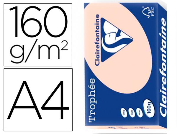 La ramette de papier A4 trophée pastel saumon 160 gr Clairefontaine est un support idéal pour véhiculer les informations et réaliser une communication personnalisée. Ce type de papier est adapté en photocopieur, imprimantes laser et jet d'encre. Son passage en recto verso est garanti sans risque de bourrage. Les teintes sont identiques grâce à sa régularité de fabrication. La ramette de papier A4 trophée pastel saumon 160 gr Clairefontaine possède un emballage transparent, pratique pour visualiser le stock et le coloris. Ses principales utilisations : réalisation de notes d'information, circulaires, formulaires, rapports d'activités, mailings, communication d'entreprise. Normes : ISO 14001, ISO 9001, FSC, ECF. U.V : La ramette e