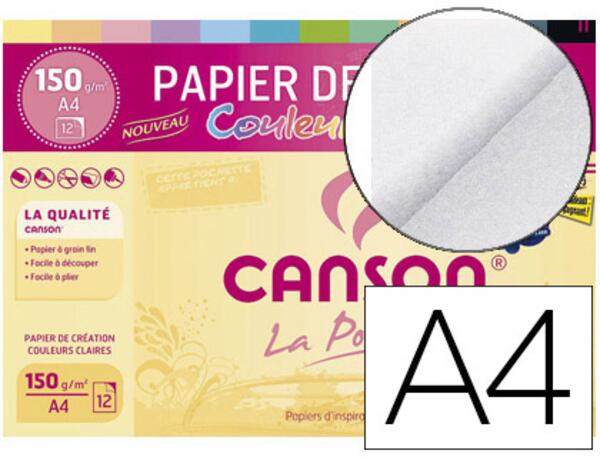Papier dessin couleur à grain fin 150 g/m². 100 % cellulose, adapté pour le crayon, le pastel, le découpage, l'encadrement, etc. Format A4. Pochette de 12 feuilles. Produit certifié FSC.