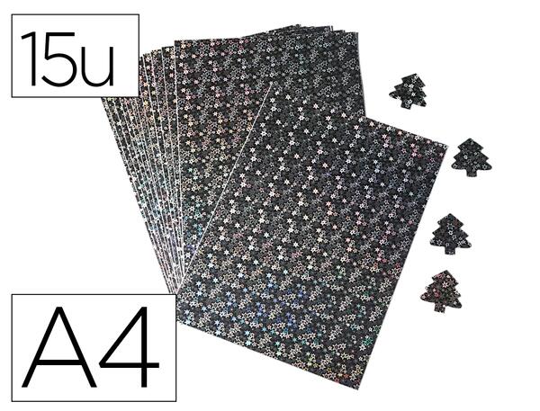 15 feuilles papier holographique adhésif étoiles - format A4