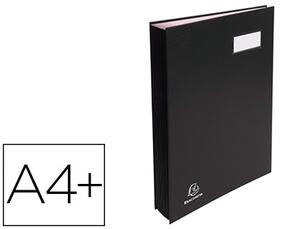 Couverture plastifiée. Porte-étiquette sur la face avant. Intérieur en carte rigide de 300 g/m2 coloris rose. Dos extensible à soufflets. Dimensions : 265 x 342 x 26 mm. Coloris noir. Produit certifié FSC.