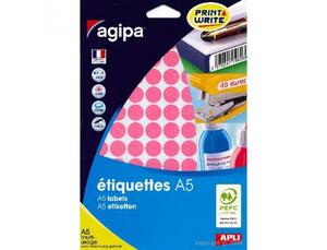 Pastilles rose multi usage Ø 15 mm. Pochette 10 feuilles A5 multi-usage soit 960 pastilles. Adhésif permanent. Pour plusieurs utilisations : identifier, marquer le prix, signaler, etc. Ces étiquettes sont un produit idéal pour pouvoir imprimer facilement mais aussi pour l'écriture manuelle. Etiquettes adhésives APLI-Agipa compatibles avec les différentes imprimantes jet d'encre, laser et copieurs du marché : Epson, Canon, HP, Lexmark..... Aucun risque de bourrage grâce à l'adhésif résistant aux hautes températures.