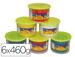 Pots de pâte à modeler souple pour jouer. Blanc, jaune, rouge, vert, bleu et orange, 460/6.