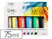 Cette boîte comprend 6 tubes de peinture acrylique Liderpapel, chacun contenant 75 ml de couleurs standards essentielles pour composer une palette équilibrée. Idéales pour les activités artistiques et créatives, ces peintures offrent un séchage rapide et une excellente résistance à l'eau une fois sèches. Elles conviennent à une grande variété de supports et permettent de travailler aussi bien avec des effets dilués qu'avec des textures épaisses, offrant ainsi une grande polyvalence aux utilisateurs.