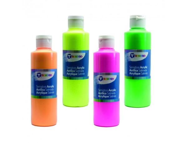 Découvrez l'assortiment de peintures acryliques TColours Fluo, prêt à l'emploi, conçu pour apporter des couleurs vives et fluorescentes à vos projets artistiques. Composé de quatre flacons de 250 ml, cet ensemble propose des teintes éclatantes telles que le jaune, le vert, le rose et l'orange, parfaites pour ajouter une touche de luminosité à vos créations.