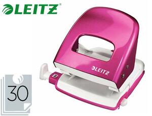Perforateur en métal. Pour une utilisation quotidienne. Robuste et fiable. Capacité de perforation : 30 feuilles (papier de 80 g/m²). Poinçons très affûtés qui facilitent la perforation. Réglette de guidage claire et solide pour un alignement parfait du papier. Réceptacle à charnière. Coloris vifs. Dimensions : 107 x 100 x 137 mm. Rose.