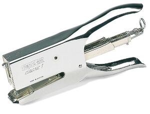 Pince tout acier chromé. Ôte-agrafes incorporé. Enclume réglable pour l'agrafage et le brochage. Contenance : 210 agrafes 24/6. Profondeur d'agrafage : 56 mm. Boîte de 1000 24/6 Réf. 41461 ou 26/6 Réf. 47551. Boîte de 5000 (24/6 Réf. 41462 ou 26/6 Réf. 47552 ou 26/8 Réf. 42031). Capacité d'agrafage (fermé et ouvert) : 50 feuilles. Chargement par l'arrière. Coloris chromé. Dimensions : 85 x 25 x 182 mm.