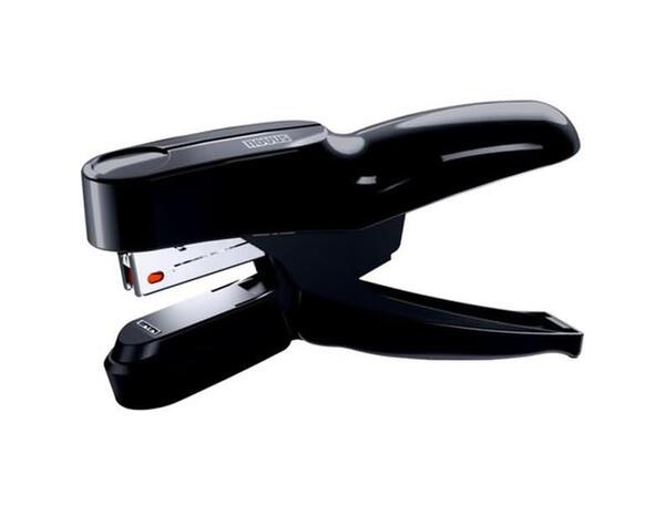 La pince agrafeuse Flat Clinch compacte. Agrafage classique à plat. Appareil tout métal avec coque ABS brillante. Système de chargement par le dessus avec guide d'agrafes simple. Capacité d'agrafage 20 feuilles. Profondeur de gorge 37 mm. Poids environ 182 g. Type d'agrafes n° 10. Max 20 feuilles