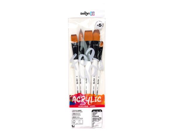 Set de 5 pinceaux larges Darwi For You. Poils souples et 100% synthétiques spécialement conçus pour la peinture acrylique. Leurs poils dégradés sont très tendance et leurs manches laqués vous faciliterons le nettoyage. Dimension 340 x 28 x 99 mm - 100 gr - 5 pinceaux par sets