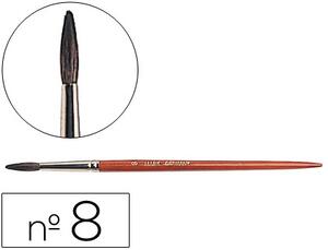 Pinceaux en bois avec virole chromée. Les poils sont fixés dans la virole avec de la colle. Recommandés pour la peinture aquarelle. Pointe arrondie.