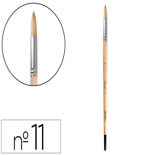 Pinceau pour peinture à l'huile et acrylique N 11 pointe ronde en poils naturels cerifié FSC. Concu pour un usage avec peinture à l'huile et acrylique. Les pinceaux en poils naturels, généralement faits de porc, sont rigides et durables. Idéal pour des techniques qui demandent une application de peinture vigoureuse et texturée. Ces pinceaux sont excellents pour travailler avec des peintures épaisses, comme les huiles et acryliques, qui peuvent distribuer de grandes quantités de peinture de facon homogène. Les poils rigident permettenr de créer des effets de texture et coups de pinceaux visibles, parfait pour des styles de peinture expressifs et dinamiques. Les pinceaux en pointe ronde ont des poils en forme pointue. Versatiles, peuvent ètre utilisés pour une grande variété de techniques, allant de traits fins a des remplissages plus large. Disponible en 19 tailles.