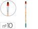 Pinceau pour peinture acrylique et aquarelle Liderpapel N 10 pointe langue d echat en fibres synthétiques certifié FSC. Concu pour un usage de peinture acrylique, aquarelle et gouache, le pinceau est solide, résistent et flexible. Les filaments synthétiques offrent un excellent retour et controle, pour une application large de couleur, sans tenir compte de la quantité d'eau utilisée. Les pinceaux en langue de chat se composent aussi des caractéristiques des pinceaux plats et ronds. Ils ont une pointe ovale qui permet d'éffectuer des traits propres et fins. Idéal pour mélanger et adoucir les bords, comme créer des lignes précises et zones de couleur plus propres. Les pinceaux de langue de chat sont spécialement utiles pour des techniques qui nécessitent une transition douce entre couleur et pour travailler des courbes détaillées. Disponible en différentes tailles.