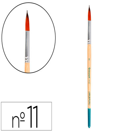 Pinceau pour peinture acrylique et aquarelle Liderpapel N 11 pointe ronde en fibres synthétiques certifié FSC. Concu pour un usage de peinture acrylique, aquarelle et gouache, le pinceau est solide, résistent et flexible. Les filaments synthétiques offrent un excellent retour et controle, pour une application large de couleur, sans tenir compte de la quantité d'eau utilisée. La forme ronde permet d'éffectuer des traits propres et fins et permet une application douce et uniforme de la couleur. Disponible en 19 tailles différentes, offrant une ample gamme de grosseur de lignes définies y détails minutieux.