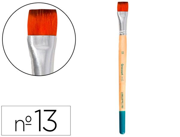 Pinceau pour peinture acrylique et aquarelle Liderpapel N 13 pointe plate en fibres synthétiques certifié FSC. Concu pour un usage de peinture acrylique, aquarelle et gouache, le pinceau est solide, résistent et flexible. Les filaments synthétiques offrent un excellent retour et controle, pour une application large de couleur, sans tenir compte de la quantité d'eau utilisée. La forme plate permet d'éffectuer des traits propres et fins. Disponible en 19 tailles différentes, offrant une ample gamme de grosseur de ligne pour s'adapter à tes besoins artistiques.