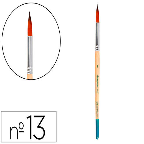 Pinceau pour peinture acrylique et aquarelle Liderpapel N 13 pointe ronde en fibres synthétiques certifié FSC. Concu pour un usage de peinture acrylique, aquarelle et gouache, le pinceau est solide, résistent et flexible. Les filaments synthétiques offrent un excellent retour et controle, pour une application large de couleur, sans tenir compte de la quantité d'eau utilisée. La forme ronde permet d'éffectuer des traits propres et fins et permet une application douce et uniforme de la couleur. Disponible en 19 tailles différentes, offrant une ample gamme de grosseur de lignes définies y détails minutieux.