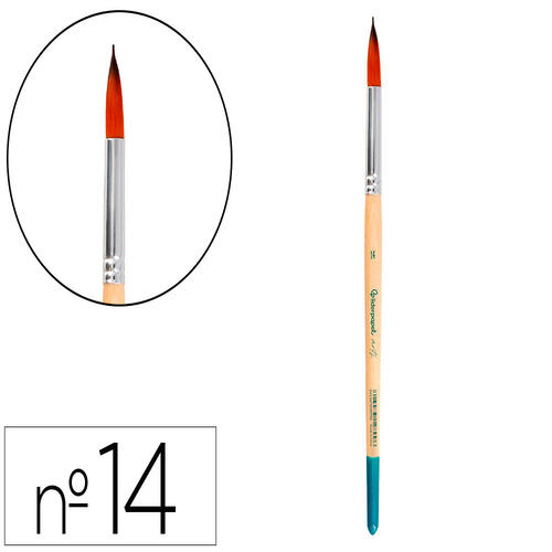 Pinceau pour peinture acrylique et aquarelle Liderpapel N 14 pointe ronde en fibres synthétiques certifié FSC. Concu pour un usage de peinture acrylique, aquarelle et gouache, le pinceau est solide, résistent et flexible. Les filaments synthétiques offrent un excellent retour et controle, pour une application large de couleur, sans tenir compte de la quantité d'eau utilisée. La forme ronde permet d'éffectuer des traits propres et fins et permet une application douce et uniforme de la couleur. Disponible en 19 tailles différentes, offrant une ample gamme de grosseur de lignes définies y détails minutieux.