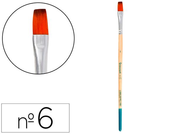 Pinceau pour peinture acrylique et aquarelle Liderpapel N 6 pointe plate en fibres synthétiques certifié FSC. Concu pour un usage de peinture acrylique, aquarelle et gouache, le pinceau est solide, résistent et flexible. Les filaments synthétiques offrent un excellent retour et controle, pour une application large de couleur, sans tenir compte de la quantité d'eau utilisée. La forme plate permet d'éffectuer des traits propres et fins. Disponible en 19 tailles différentes, offrant une ample gamme de grosseur de ligne pour s'adapter à tes besoins artistiques.