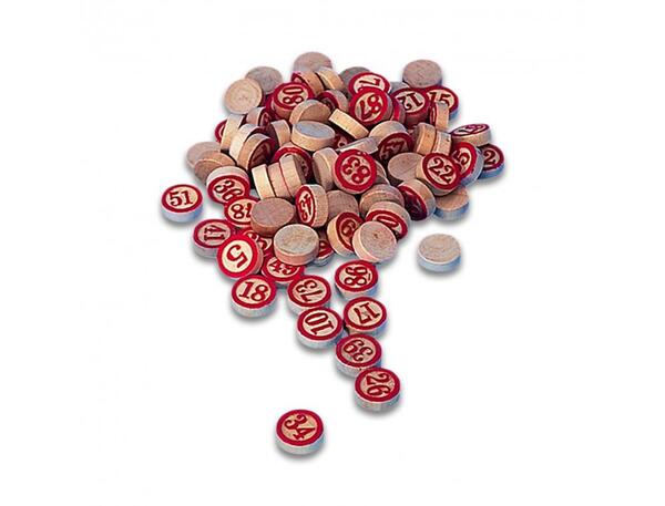 Matière : bois. Dim. (Ø x H) : 1,8 x 0,5 cm - 90 pions numérotés 1 face
