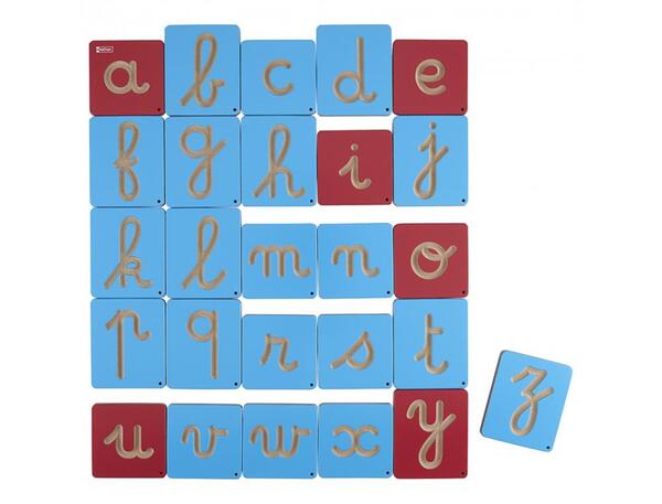 Ces supports en bois épais favorisent la reconnaissance des 26 lettres de l'alphabet et des chiffres de 0 à 9 par le toucher en creux. La piste