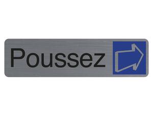 Plaque adhésive imitation aluminium Poussez 16,5X4,4 cm. Une bonne signalétique est indispensable pour informer les usagers et leur permettre de se repérer. Ce panneau permet ainsi d'orienter les usagers et de leur transmettre une information clé. Cette plaque imprimée sur un support d'épaisseur 0,8 mm, d'aspect aluminium brossé est auto-adhésive. Elle se fixe facilement et rapidement sur tous types de supports. Ce produit est vendu dans une cartonnette individuelle, recyclable et avec perfomation pegbordable.