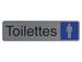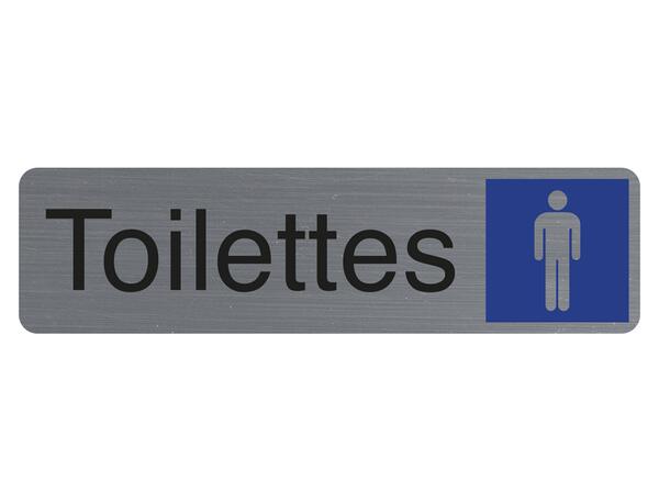 Plaque adhésive imitation aluminium Toilettes homme 16,5X4,4 cm. Une bonne signalétique est indispensable pour informer les usagers et leur permettre de se repérer. Ce panneau permet ainsi d'orienter les usagers en balisant correctement les espaces clés. Cette plaque imprimée sur un support d'épaisseur 0,8 mm, d'aspect aluminium brossé est auto-adhésive. Elle se fixe facilement et rapidement sur tous types de supports. Ce produit est vendu dans une cartonnette individuelle, recyclable et avec perfomation pegbordable.
