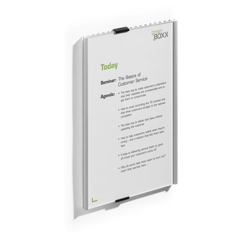 Cette plaque de porte durable Info Sign au format A4 portrait allie élégance et fonctionnalité pour la signalisation intérieure. Conçue en acrylique et aluminium avec une finition argent métallisé, elle offre un aspect moderne et professionnel adapté à divers environnements tels que bureaux, salles de conférence ou halls d'entrée. Son système ingénieux permet un remplacement facile des inserts en carton, facilitant ainsi la mise à jour des informations affichées.