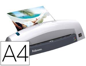 Technologie 100% sans bourrages en utilisant des pochettes Fellowes. Plastifie des pochettes jusqu'à 125 microns d'épaisseur. Signaux sonores et lumineux quand la machine est prête. Mécanisme de dégagement en cas de mauvaise insertion. Plastifie un document A4 en 1 minute (300 mm/min). Temps de chauffe et de stabilisation : 4 minutes. Stabilisation de température pour une qualité de plastification constante. Coloris blanc et gris.