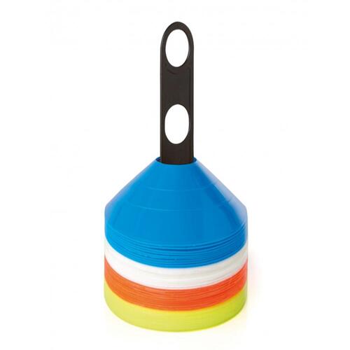Pour le balisage du terrain ou pour définir des zones de travail. Les différentes couleurs permettent de créer des repères visuels ou d'organiser des groupes de niveau. Contenu : 40 plots et 1 support - 4 Coloris assortis