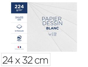 Pochette Dessin Scolaire - 12 Feuilles Papier Dessin Blanc à Grain - 24x32 cm 224g - Idéal pour les Arts Plastiques