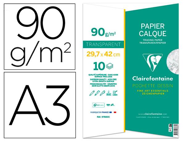 Profitez de la qualité exceptionnelle de la pochette Clairefontaine Calque Supérieur A3, spécialement conçue pour les amateurs et professionnels de l'art ainsi que pour les usages techniques. Ce papier calque offre une transparence remarquable, parfaite pour des travaux nécessitant finesse et précision. De plus, sa résistance vous permet de gommer ou gratter sans craindre de déchirure, tout en garantissant une durabilité à long terme.