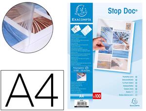 En polypropylène lisse 11/100ème. Incolore. Soudées sur 1/3 de la hauteur pour le maintien parfait des documents. Encoche anti-déchirement. Format A4. Étui carton de 100 unités.
