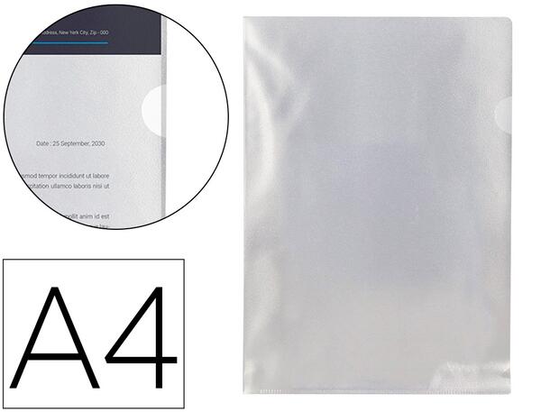 En polypropylène 12/100ème transparent. Ouverture facile grâce à la découpe latérale. Aspect grainé. Solution idéale et économique pour classer, ranger et conserver vos documents de façon sûre et organisée grâce aux différentes couleurs. Capacité : jusqu'à 20 feuilles. Format A4.